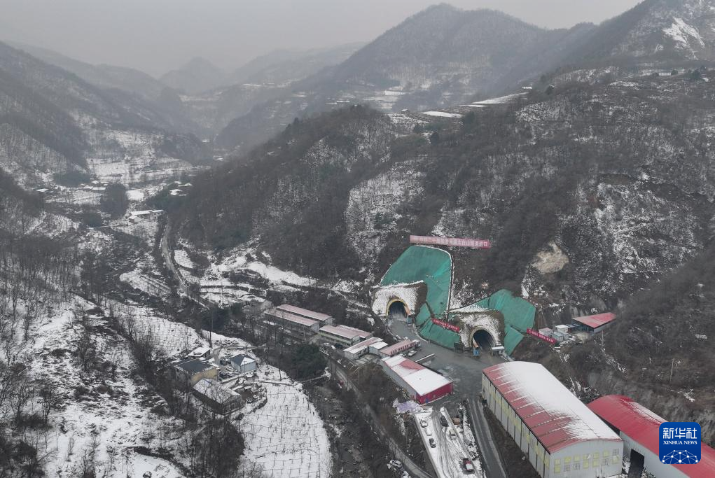 这是2月28日拍摄的位于陕西省宝鸡市眉县的眉太高速太白山隧道进口(无人机照片)。(新华社记者 张博文 摄)
