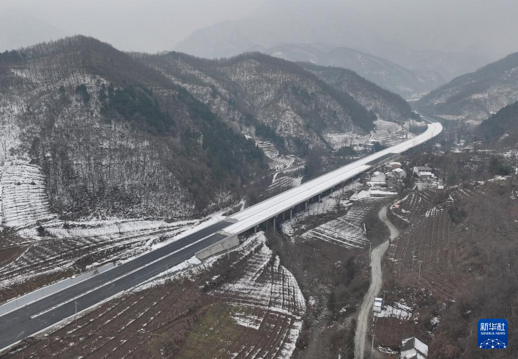 这是2月28日拍摄的位于陕西省宝鸡市眉县的眉太高速李家河2号桥(无人机照片)。(新华社记者 张博文 摄)