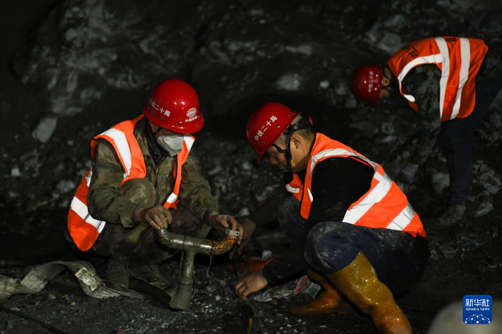 2月28日,中铁二十局工人在位于陕西省宝鸡市眉县的眉太高速太白山隧道施工。(新华社记者 张博文 摄)