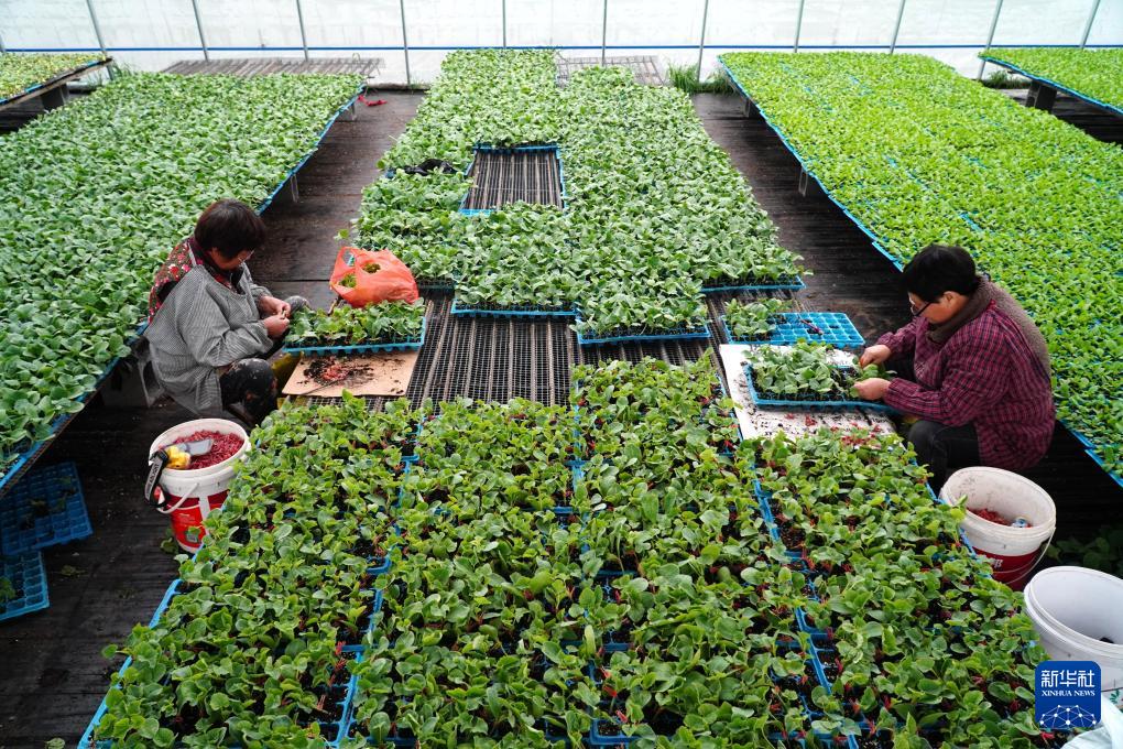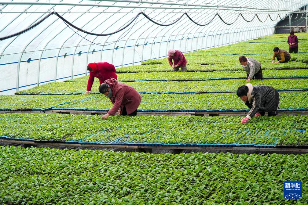 近日,山东省枣庄市的种苗培育大棚进入早春生产高峰,工作人员加紧培育各类蔬菜瓜果幼苗,为即将到来的春耕、春播做好准备。