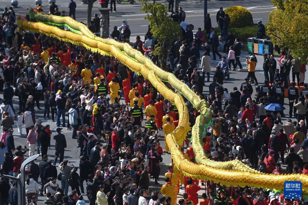 3月10日,有着“中国布龙之乡”之称的浙江省宁波市奉化区举办“和乐春龙二月二”大巡游活动,20支来自乡镇(街道)、学校等单位的布龙队伍一同在岳林广场亮相,逐一表演后在城市街区巡游,吸引大批市民驻足观看。