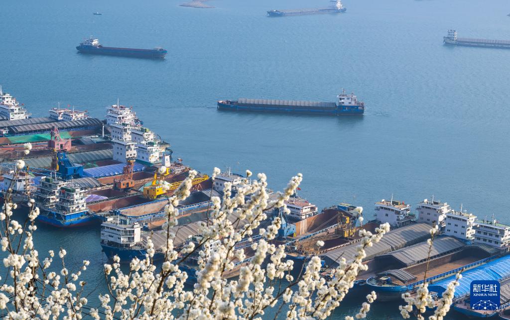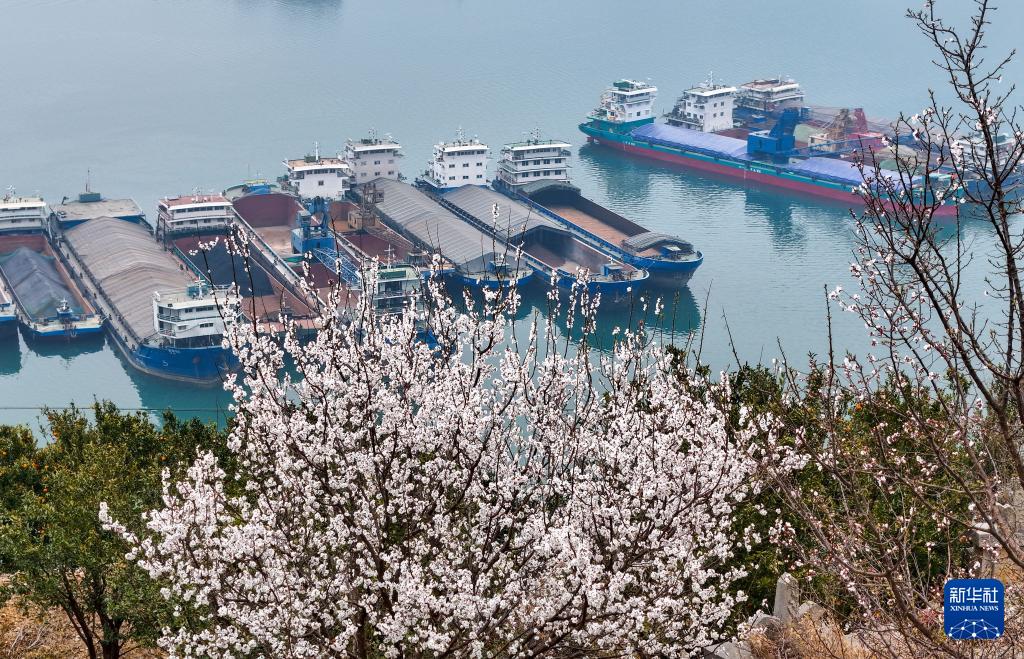 3月11日,船舶停靠在长江三峡湖北省宜昌市秭归县水域。(新华社发 郑家裕 摄)
