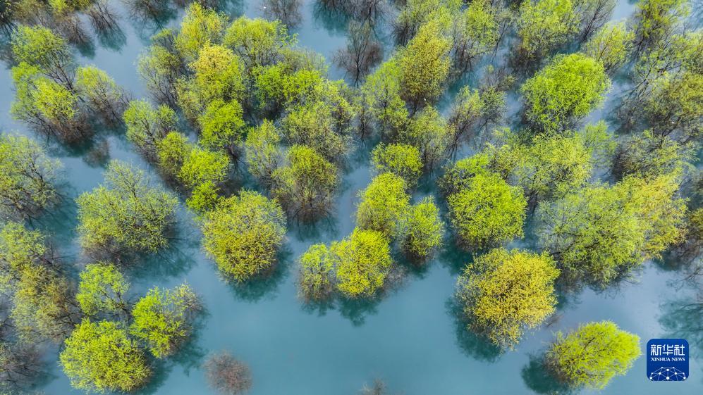 这是3月12日在陇南市文县玉垒乡拍摄的柳树(无人机照片)。(新华社记者 郎兵兵 摄)