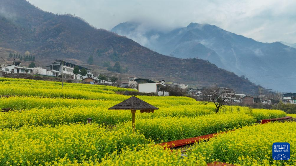 3月12日,甘肃省陇南市文县迎来一场小雨,雨后春色映入眼帘。