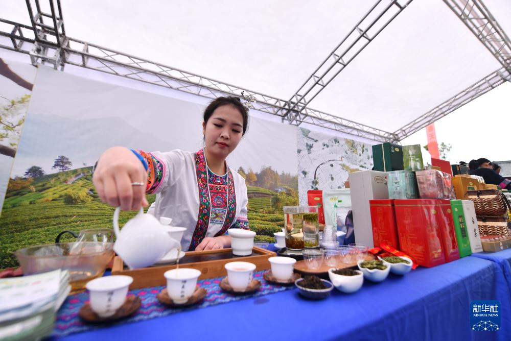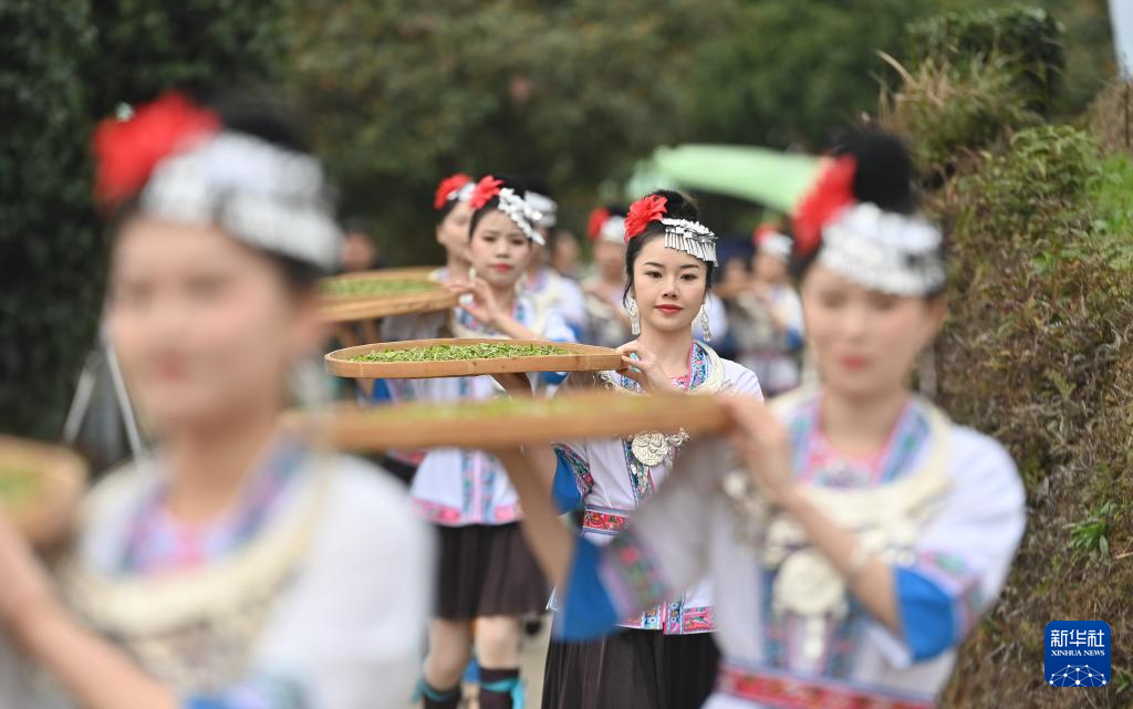 3月14日,在柳州市三江侗族自治县八江镇布央村,村民在展示茶艺。(新华社记者 黄孝邦 摄)