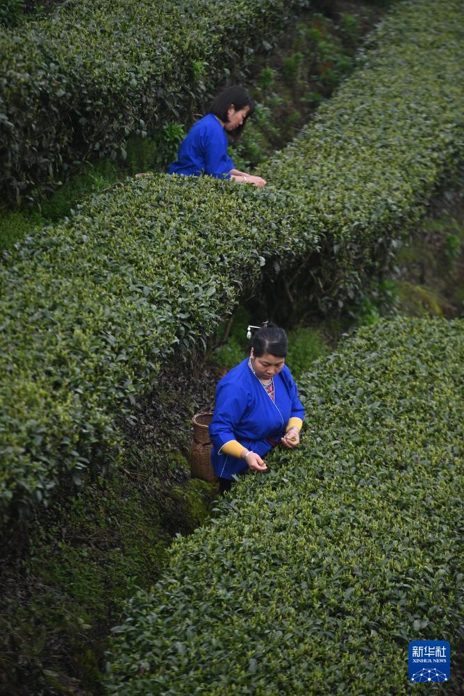 3月14日,柳州市三江侗族自治县八江镇布央村的村民在采茶。(新华社记者 黄孝邦 摄)