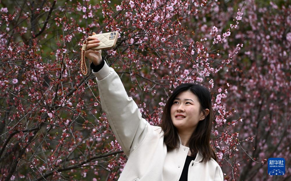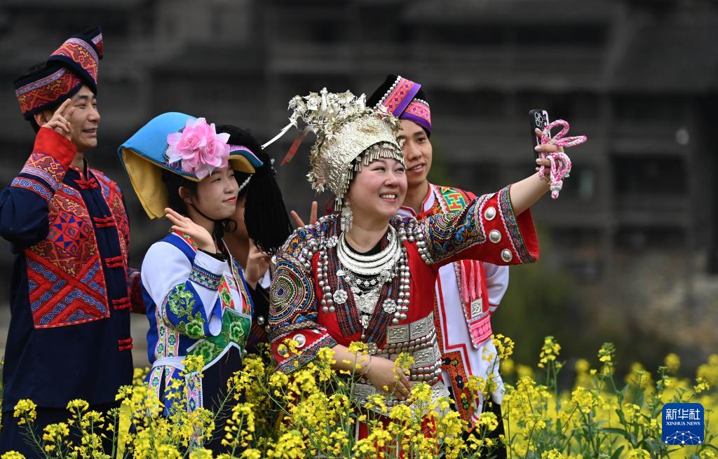 3月14日,游客在贵州省遵义市播州区乌江寨景区自拍。(新华社记者 杨楹 摄)