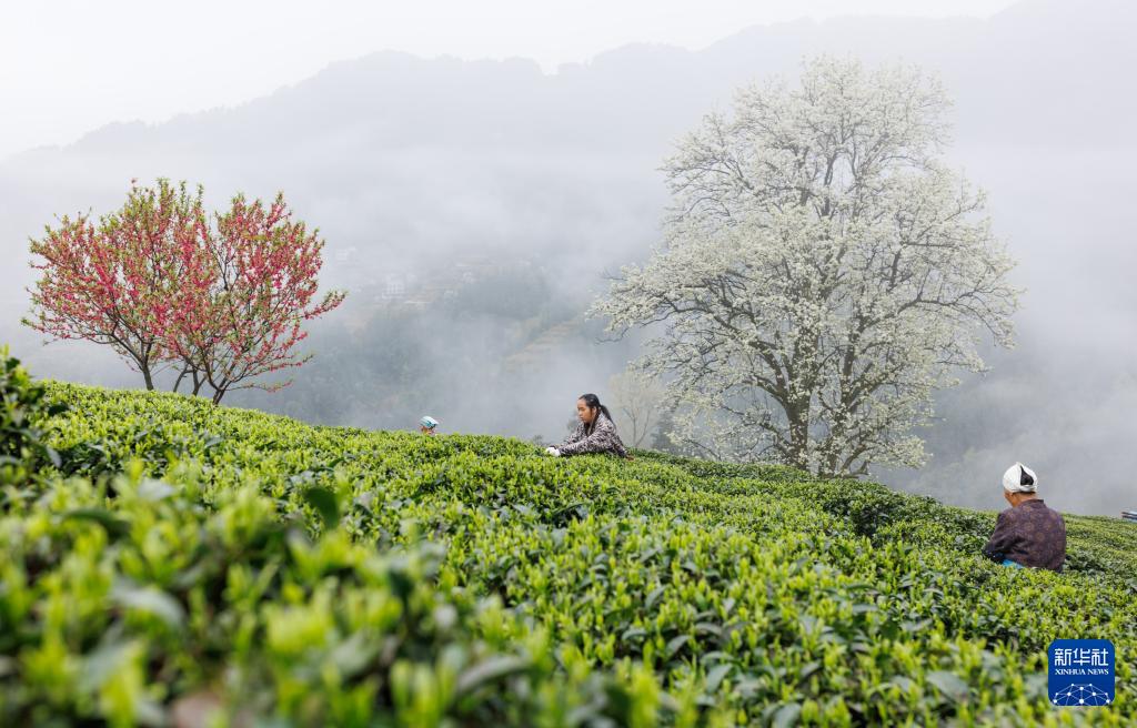3月17日,广西三江侗族自治县八江镇归令村茶农在茶园采茶。(新华社发 粟勇主 摄)
