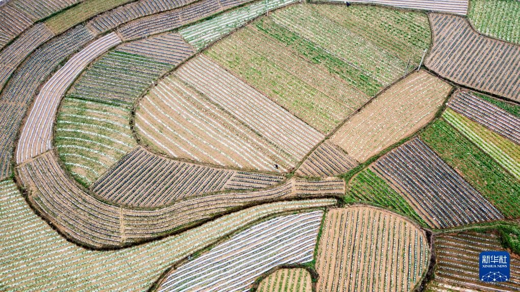 3月17日,广西靖西市禄峒镇农贡村农民在田间劳作(无人机照片)。(新华社发 赵京武 摄)