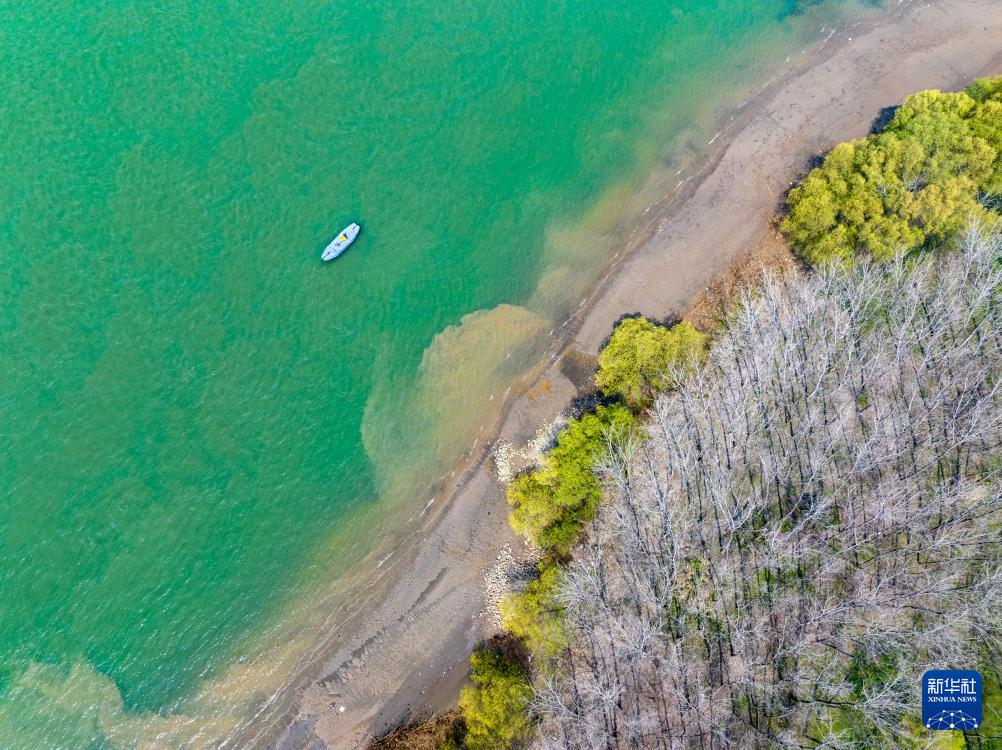 3月19日拍摄的长江镇江段景色(无人机照片)。(新华社发 濮方杰 摄)