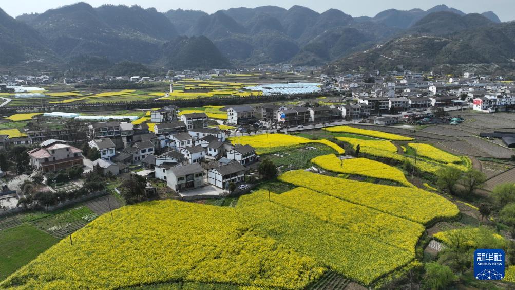 春日里,在贵州省遵义市绥阳县盛林生态农场,油菜花、桃花等花卉竞相绽放,吸引游人前来赏花游玩。
