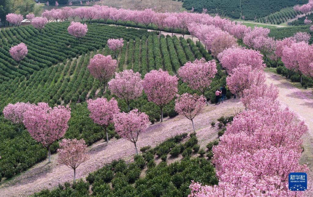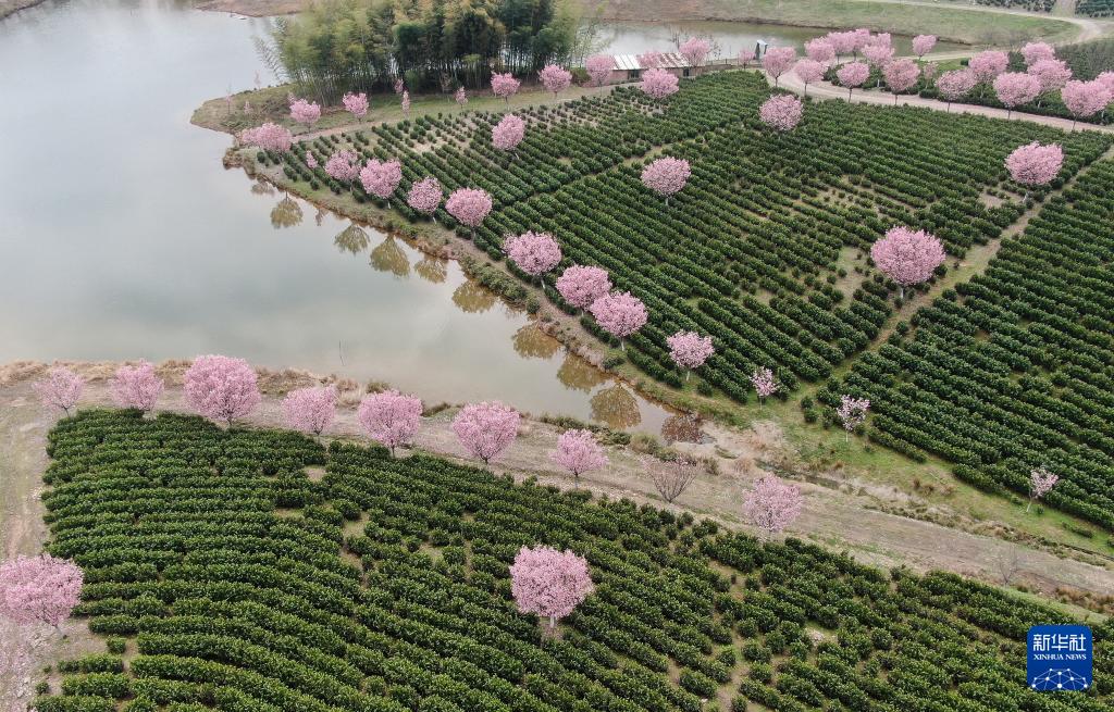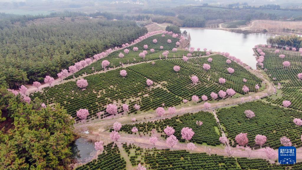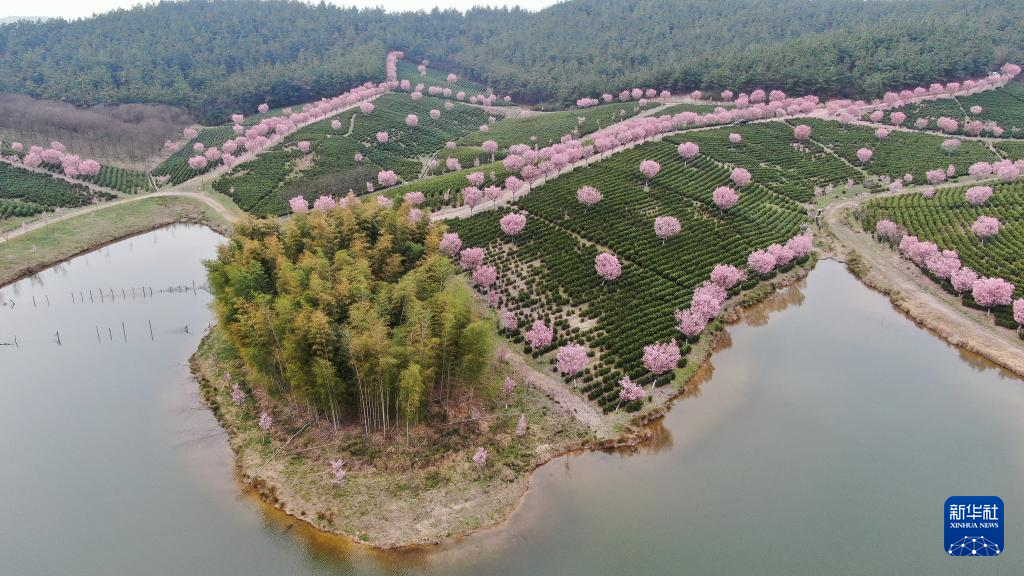春日时节,位于江苏溧阳的十思园生态茶园樱花绽放。