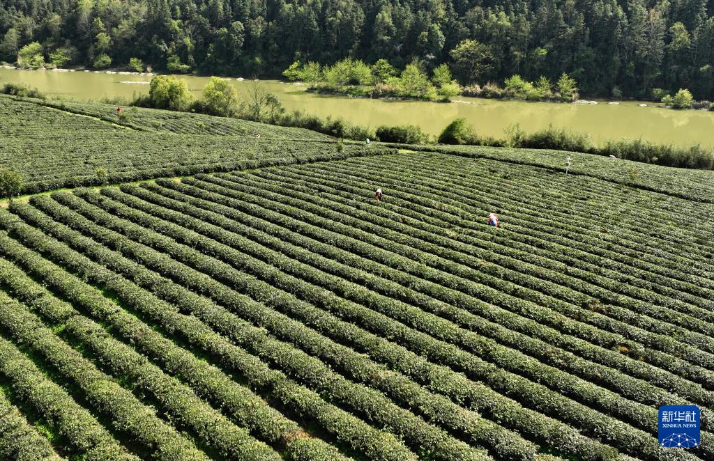3月28日,江西省修水县漫江乡宁红村的茶农在采摘明前茶。(新华社记者 万象 摄)