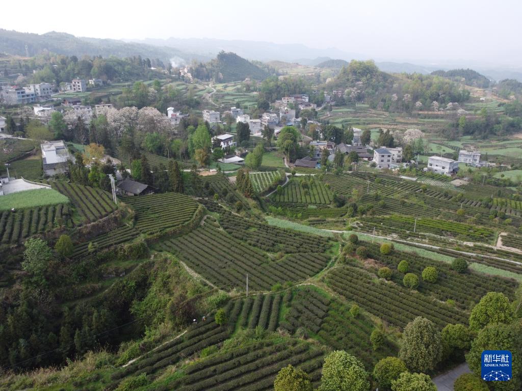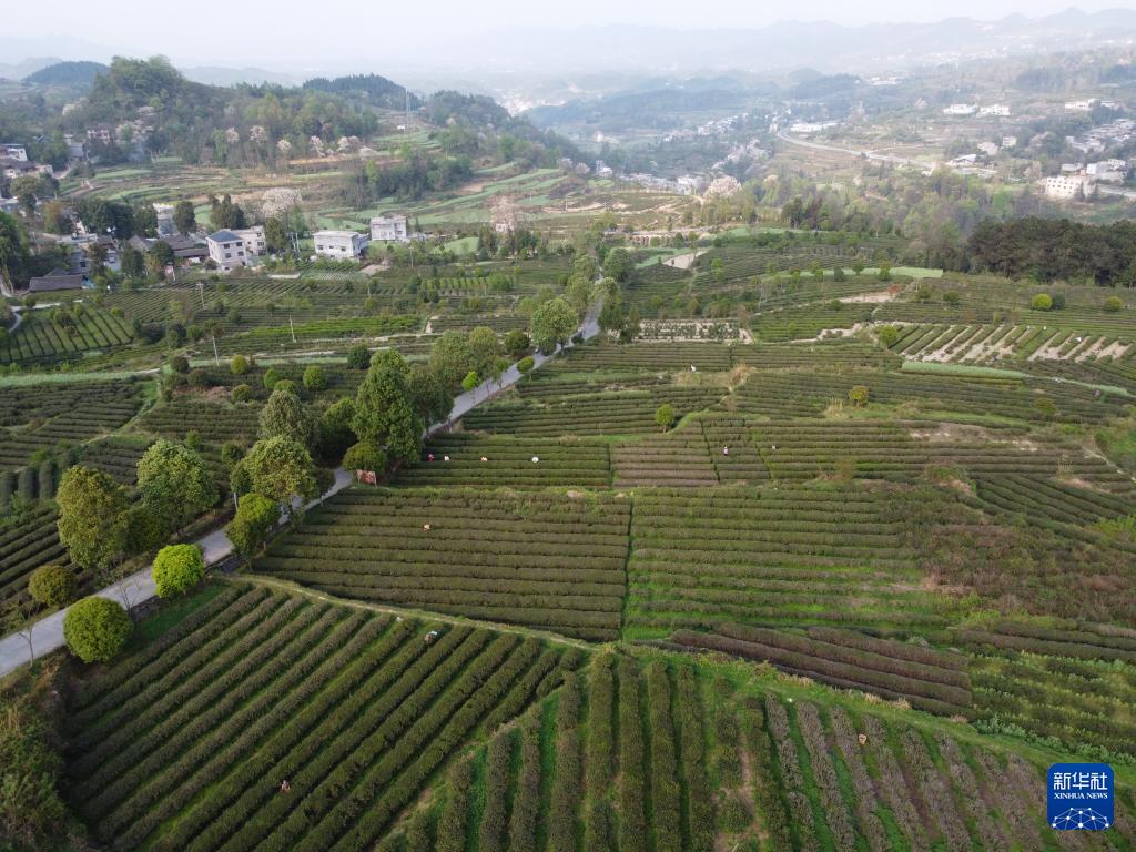 这是4月2日在贵州省石阡县龙井仡佬族侗族乡枫香坪村拍摄的茶园(无人机照片)。(新华社记者 姜贺轩 摄)