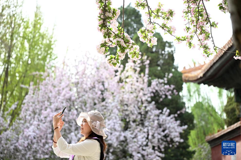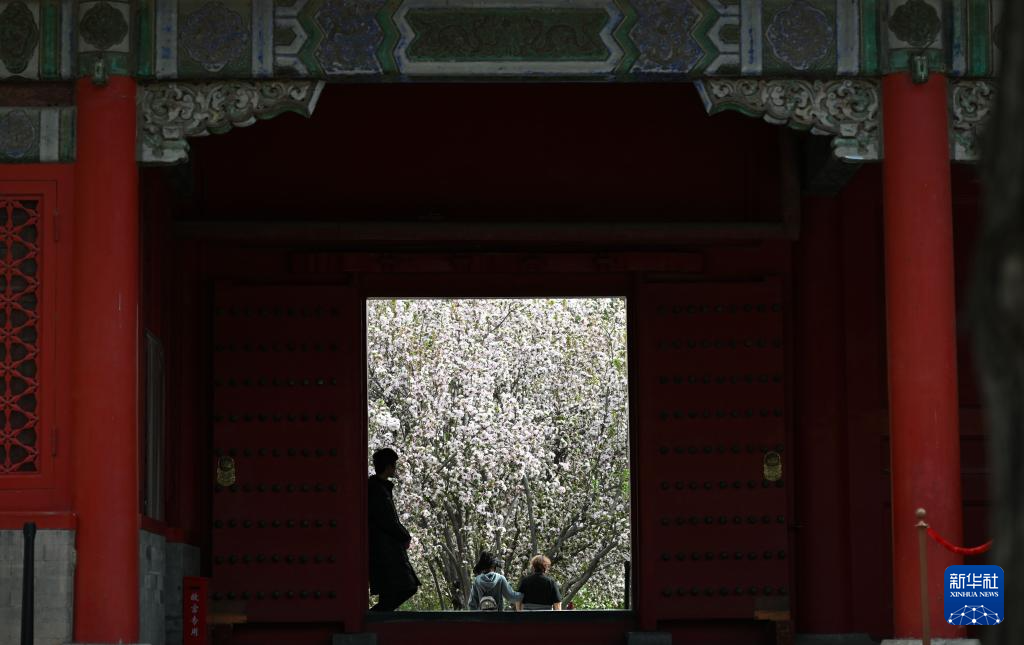 4月7日,游客在故宫内赏花。(新华社记者 金良快 摄)