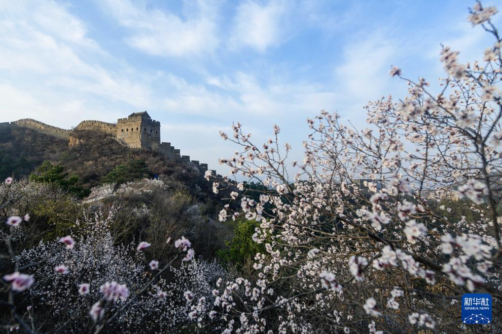 清明假期,在河北省滦平县境内的金山岭长城景区,长城周边山花烂漫,春意盎然,美如画卷。