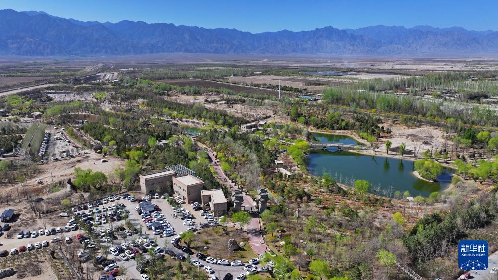 贺兰山运动公园全景(无人机照片,4月10日摄)。(新华社记者 王鹏 摄)