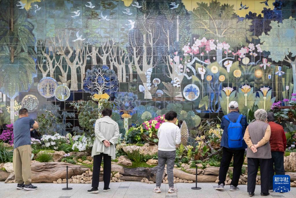 4月18日,在上海植物园主会场,人们参观上海植物园建园50周年特展。(新华社记者 王翔 摄)