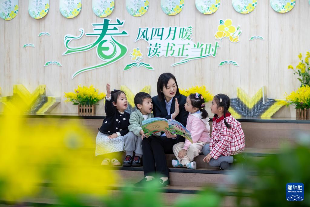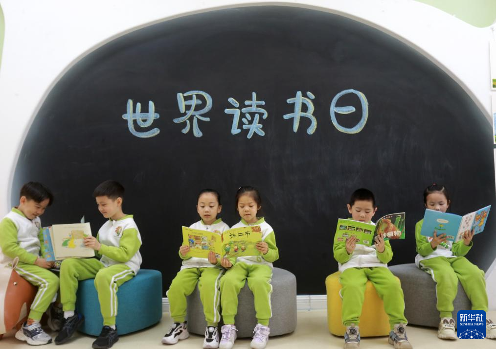 4月22日,在江苏扬州大学第一幼儿园,小朋友在阅读图书。(新华社发 孟德龙 摄)