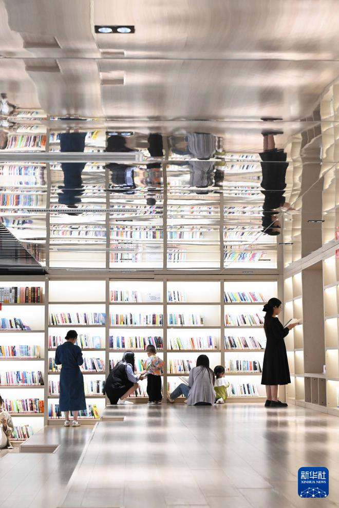4月22日,市民在河北省石家庄市鹿泉区龙泉湖公园内的城市书房阅读。(新华社发 陈其保 摄)