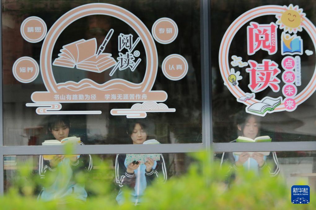 4月22日,在山东潍坊高密市第五中学,中学生在阅览室读书。(新华社发 李海涛 摄)