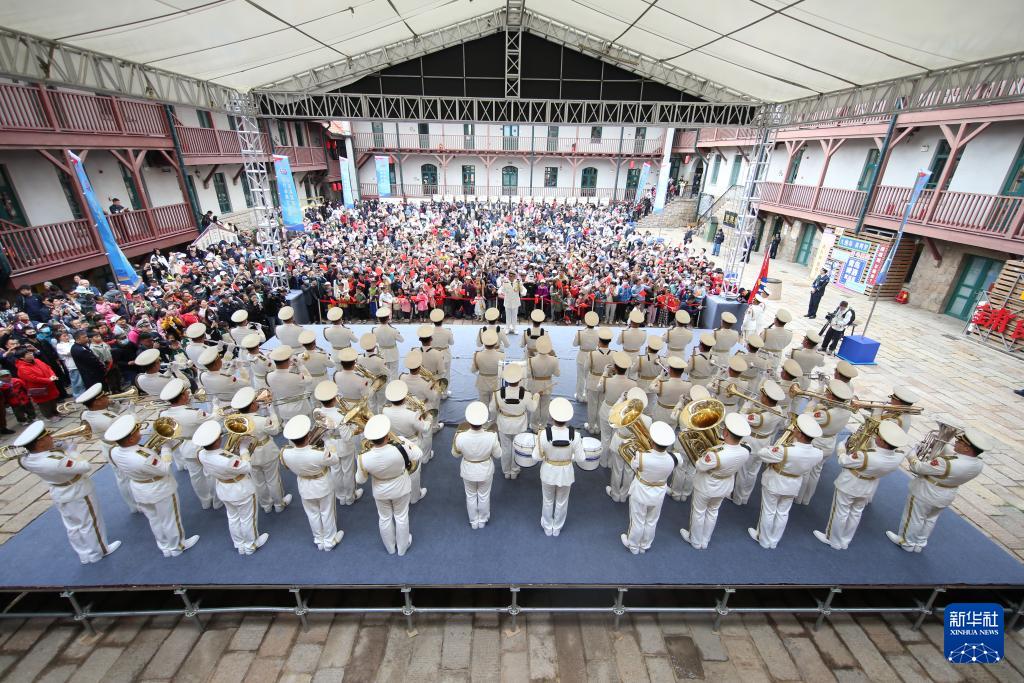中国人民解放军海军军乐队在中国人民解放军海军博物馆举行庆祝人民海军成立75周年军乐展演活动(4月20日摄)。(新华社发 袁波 摄)