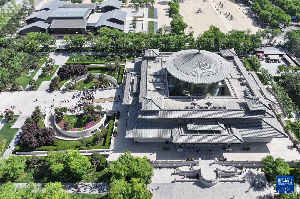 4月25日,游客游览西安博物院(无人机照片)。(新华社记者 邵瑞 摄)