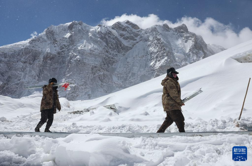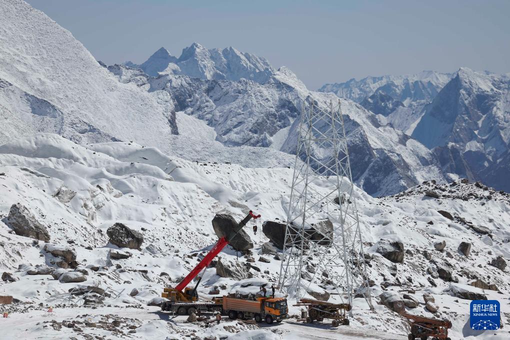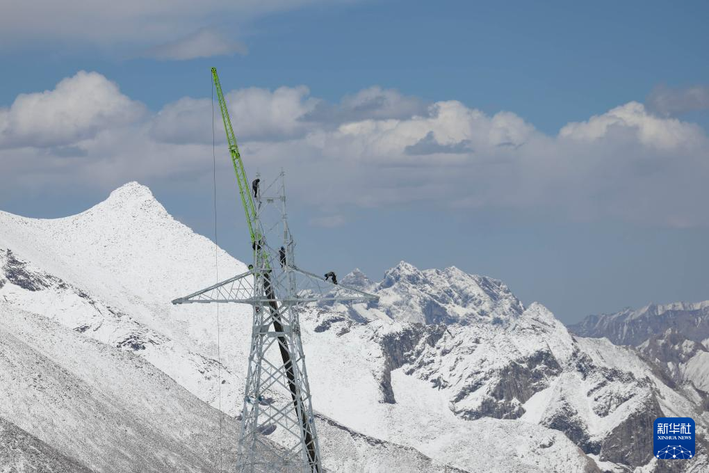 尽管离立夏不足半月,新疆和田地区南部昆仑山深处依旧白雪皑皑,有百余名工人忙碌在电力工程建设一线。