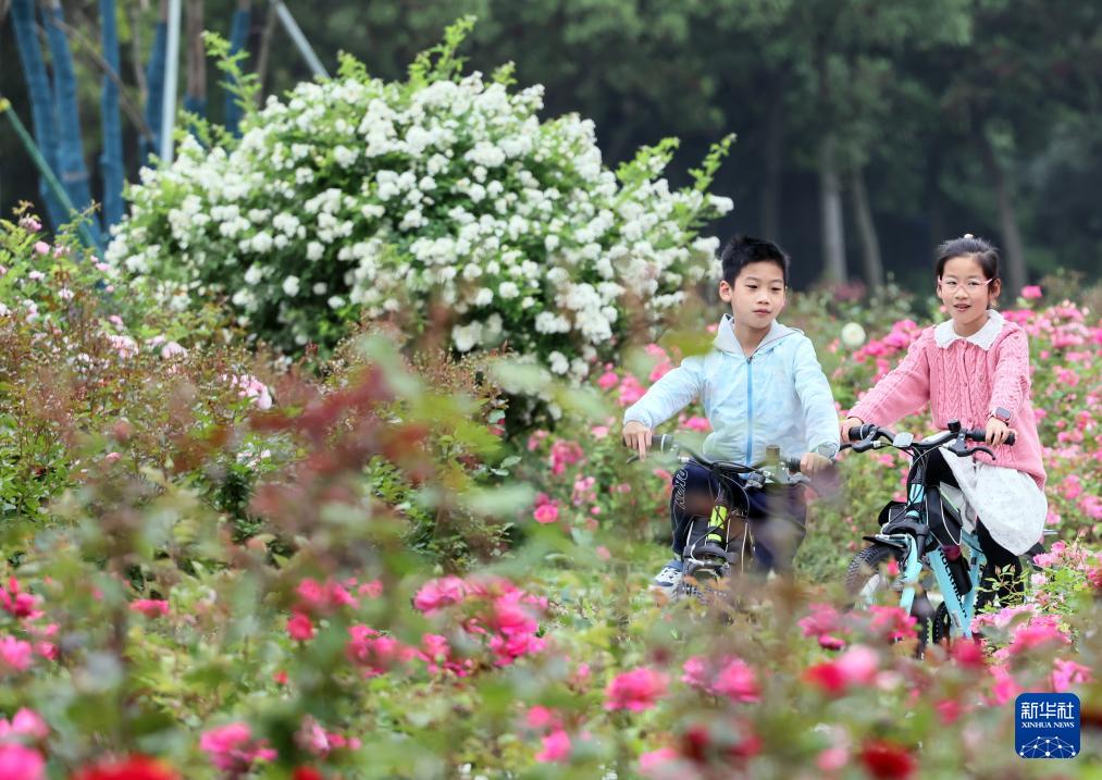 4月27日,儿童在植物园游玩。(新华社记者 兰红光 摄)