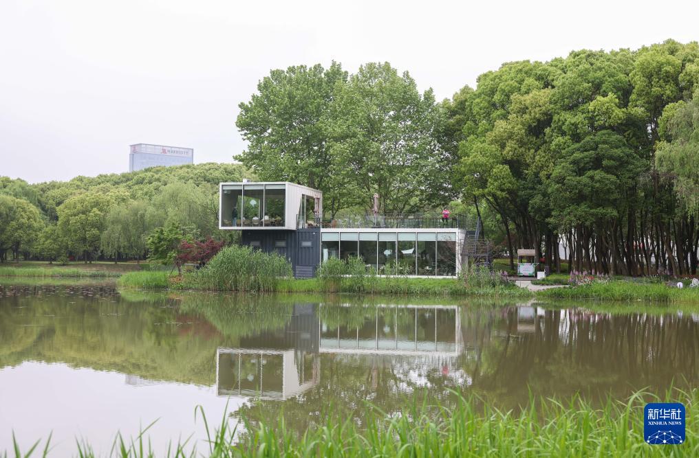 4月27日拍摄的嘉兴植物园内设立的“禾城驿·温暖嘉”驿站。驿站内已实现了咖啡厅、休息室、卫生间、基本药物提供等服务,在满足市民休憩如厕需求的同时,回应市民亲近自然的意愿。(新华社记者 孙凡越 摄)