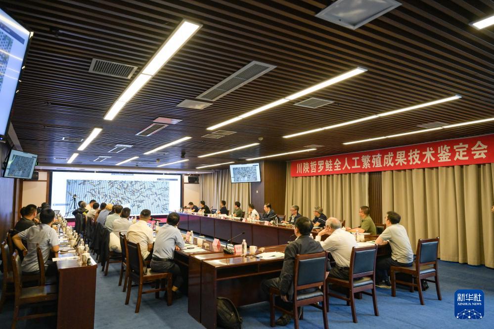 5月6日,在川陕哲罗鲑全人工繁殖成果技术鉴定会上,与会专家对“川陕哲罗鲑全人工繁殖技术研究”成果项目进行讨论鉴定。(新华社记者 王曦 摄)