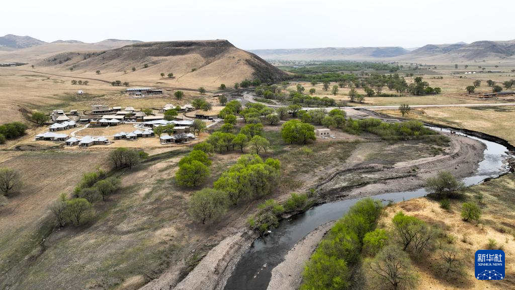 这是乌兰毛都草原上的草原宿集(5月10日摄,无人机照片)。(新华社记者 贝赫 摄)