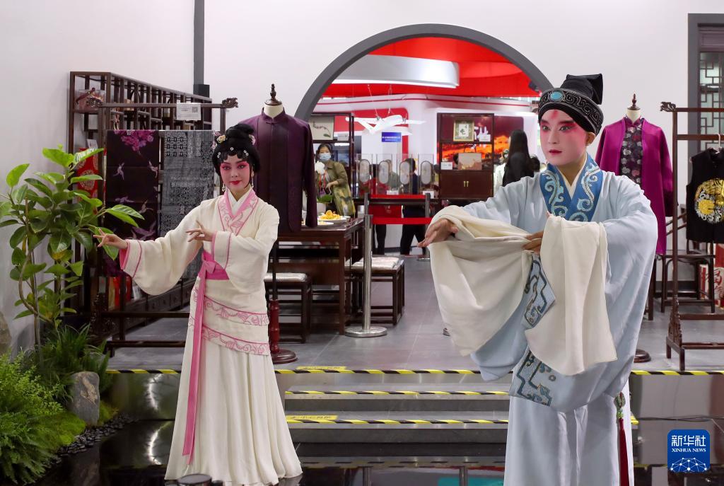 5月11日,演员在江苏苏州展台上表演昆剧《浣纱记》。(新华社记者 方喆 摄)