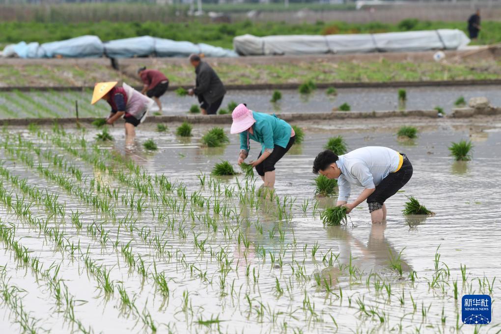 初夏时节,农民抢抓农时忙农事,乡村田野一片繁忙景象。
