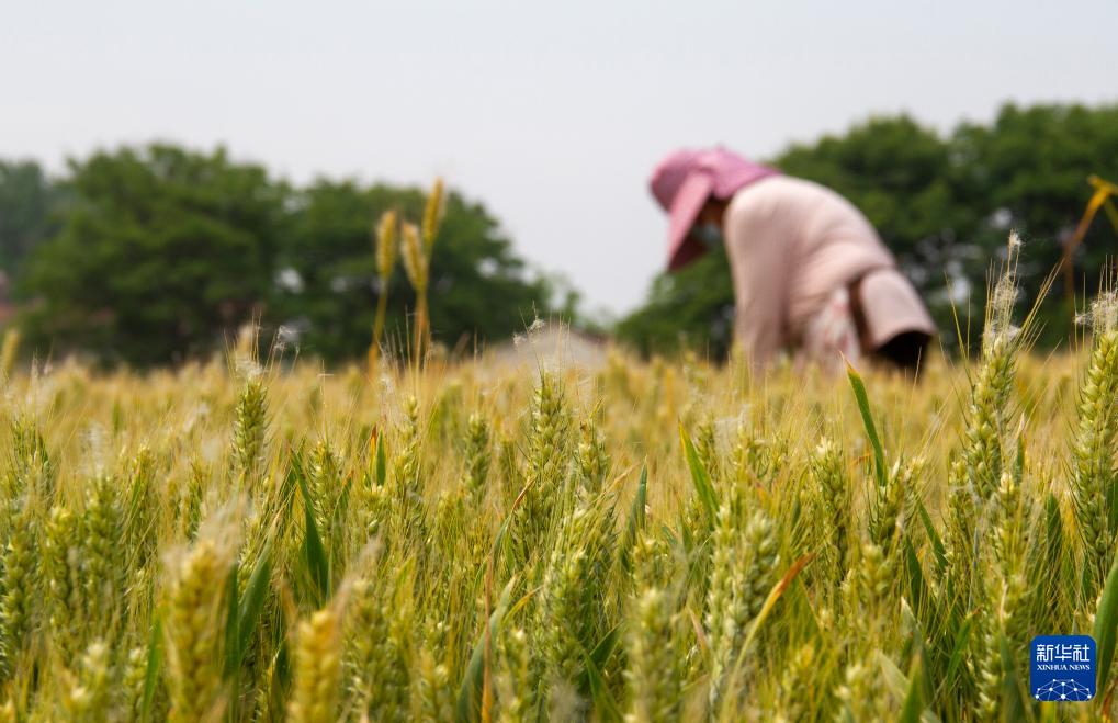5月20日,河南省商丘市夏邑县会亭镇崔楼村村民在麦田里除杂。(新华社发 王高超 摄)