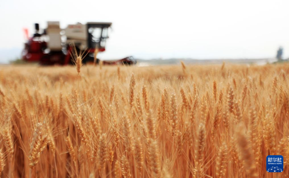 5月20日,在山东省临沂市平邑县卞桥镇薄板沟村,农机手驾驶收割机收割小麦。(新华社发 武纪全 摄)