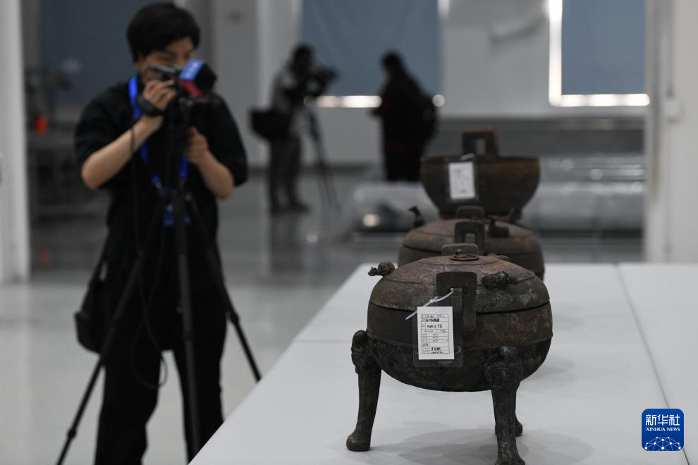 5月20日,媒体人员在武王墩考古实验室进行拍摄。(新华社记者 张端 摄)