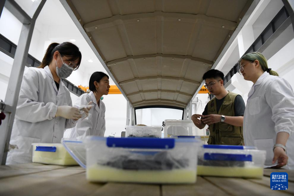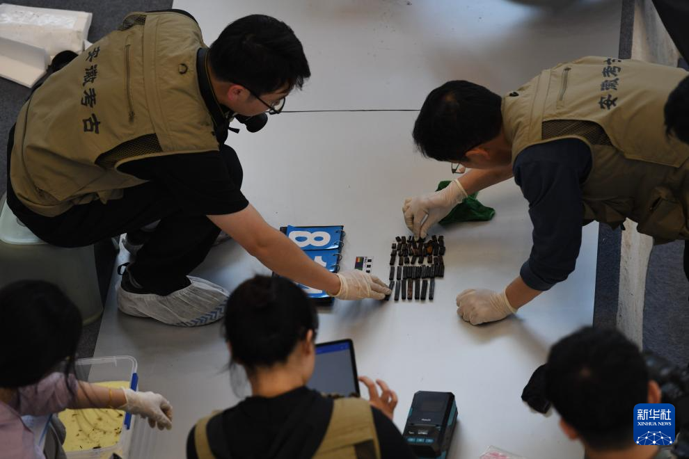 5月20日,考古人员在武王墩考古实验室清点出土文物。(新华社记者 张端 摄)