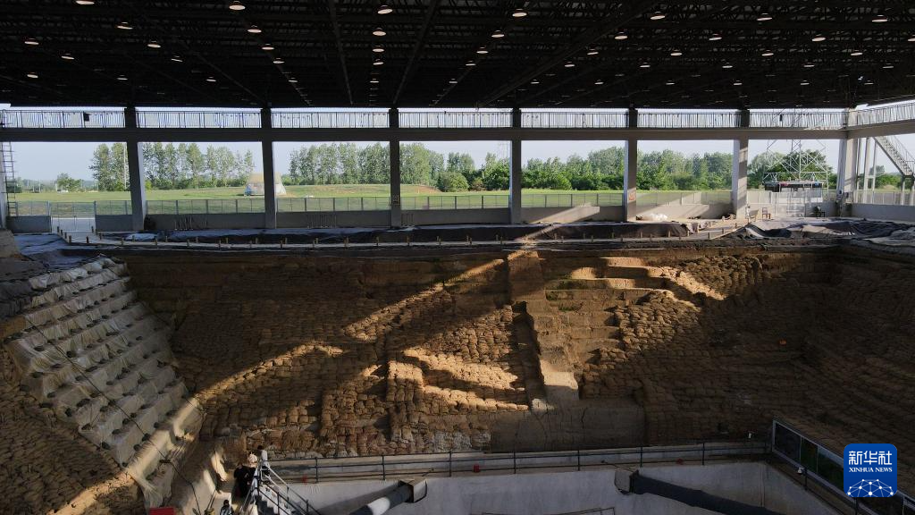 5月20日拍摄的武王墩墓发掘现场(无人机照片)。(新华社记者 张端 摄)