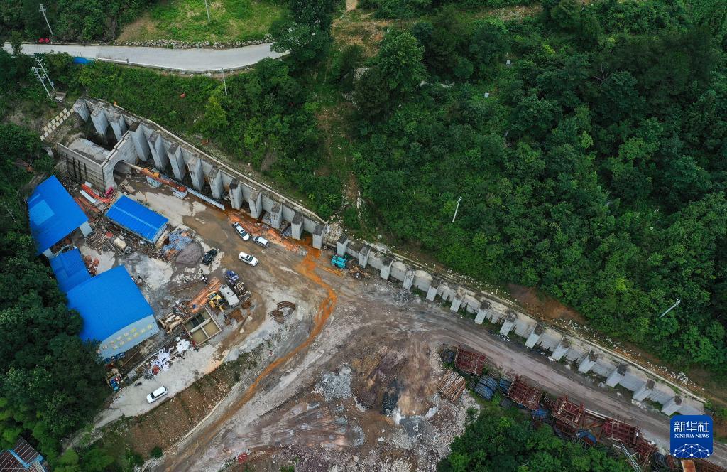 这是6月18日拍摄的贵州瓮马铁路南北延伸线桃花坪隧道外建设场景(无人机照片)。(新华社记者 杨文斌 摄)