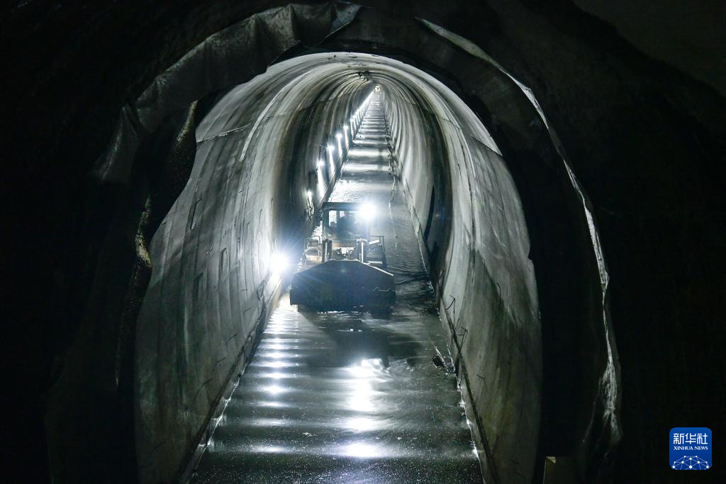 6月18日,工人驾驶工程车在贵州瓮马铁路南北延伸线桃花坪隧道内施工。(新华社记者 杨文斌 摄)