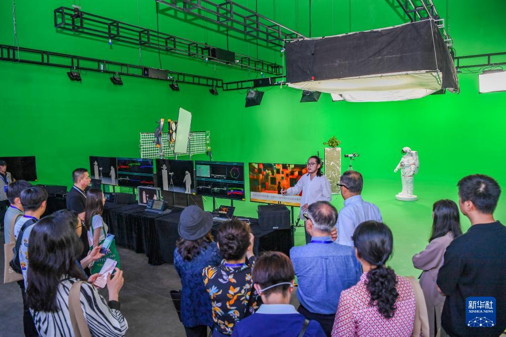 6月27日,在重庆永川科技片场,观众体验“虚拟拍摄”技术。(新华社记者 王全超 摄)