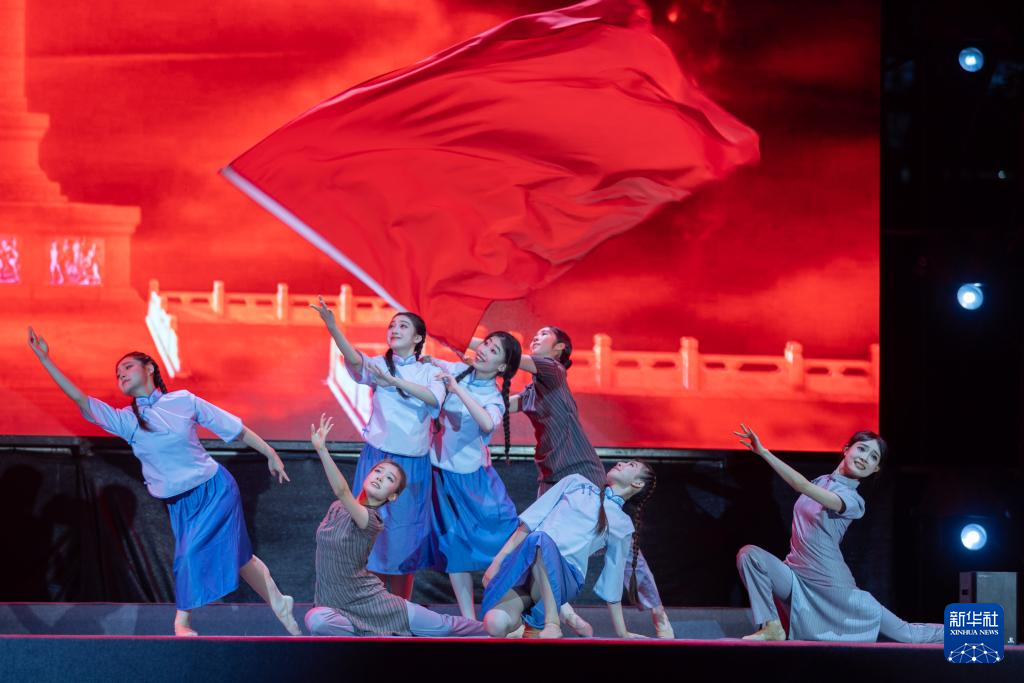 7月2日,上海师范大学音乐学院学生表演歌舞诗剧《绣红旗》。(新华社记者 王翔 摄)