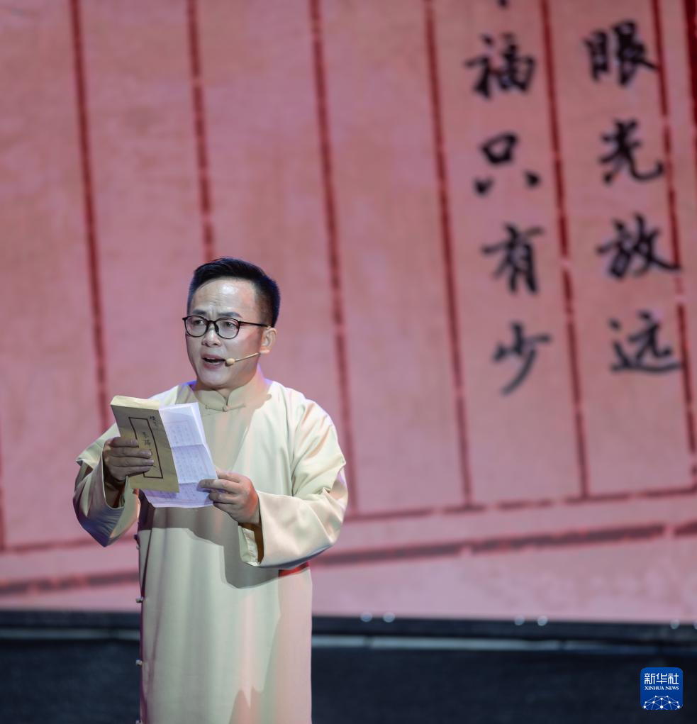7月2日,浦锦街道沪剧队演员进行情景表演《一封家书》。(新华社记者 王翔 摄)