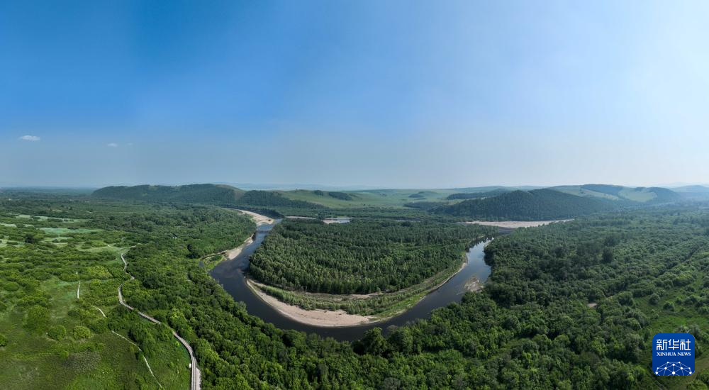 7月2日拍摄的额尔古纳市额尔古纳国家湿地公园(无人机全景照片)。(新华社记者 贝赫 摄)