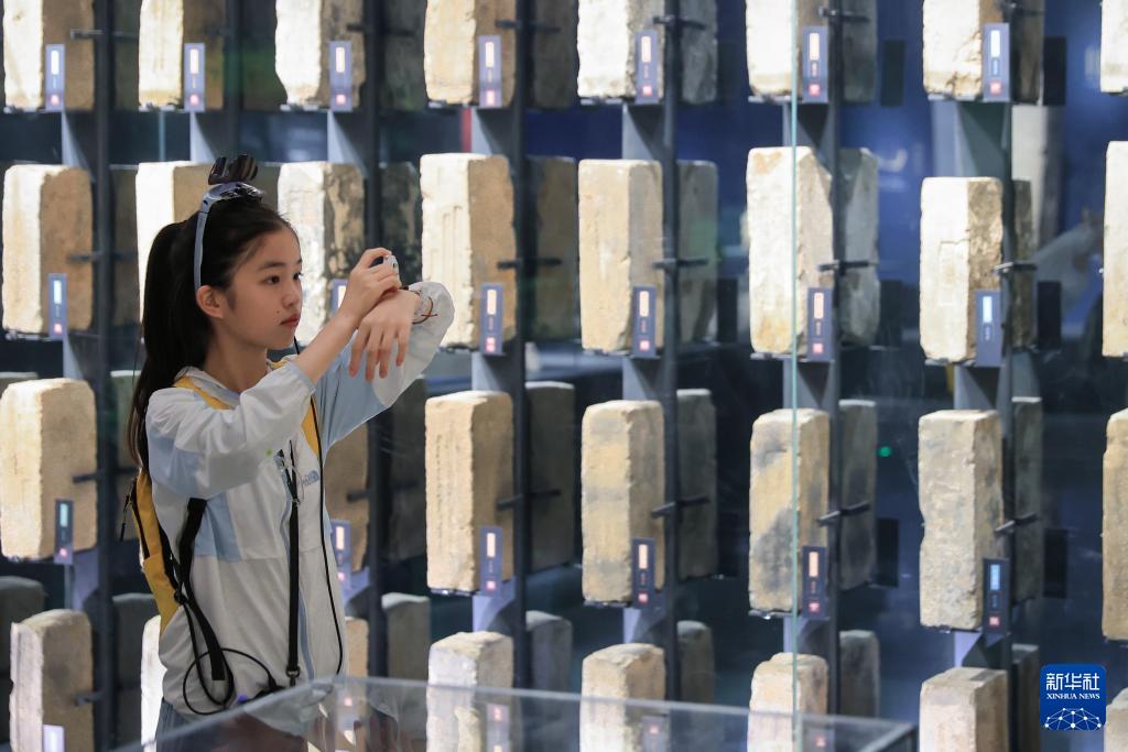 7月7日,一名小朋友在南京城墙博物馆参观。(新华社发 苏阳 摄)