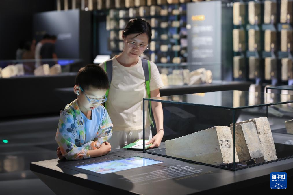 7月7日,家长陪伴孩子在南京城墙博物馆参观。(新华社发 苏阳 摄)