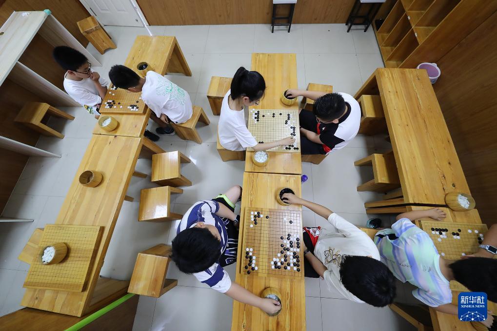 7月7日,在河南省商丘市睢阳区一家围棋培训机构,孩子们在下围棋。(新华社发 李恒 摄)