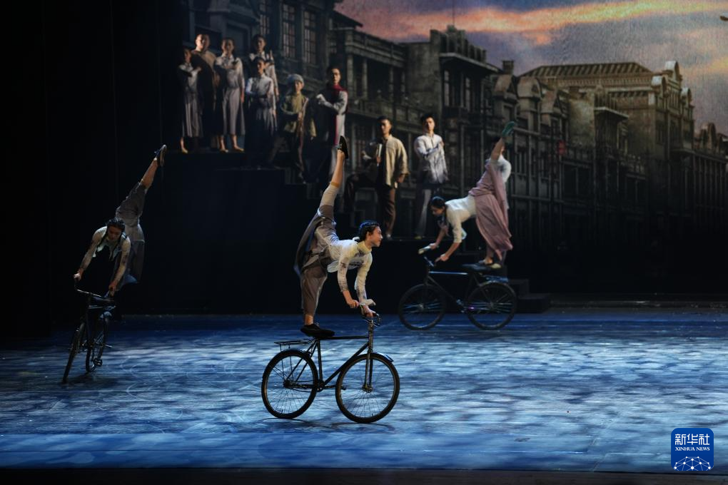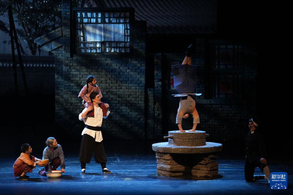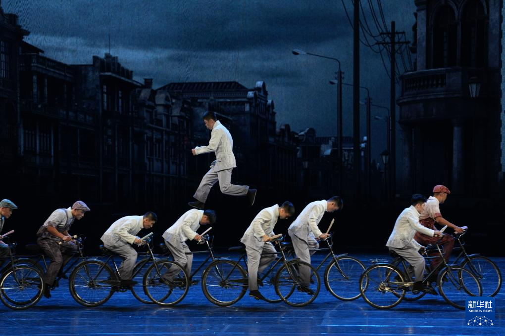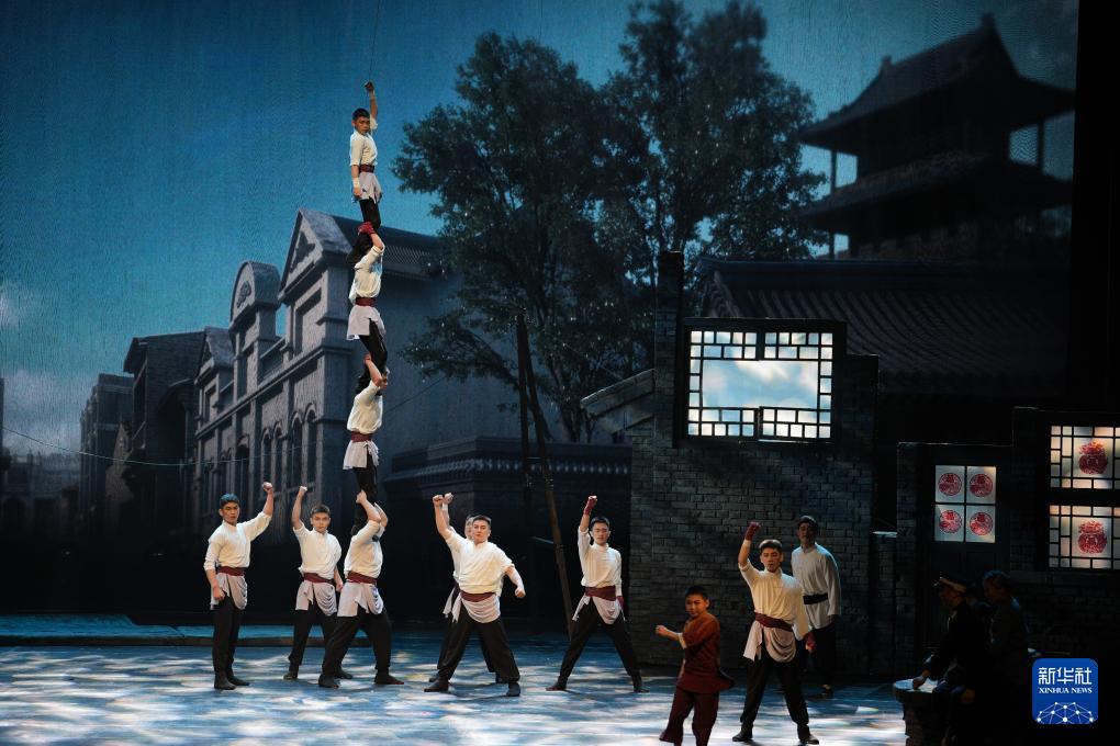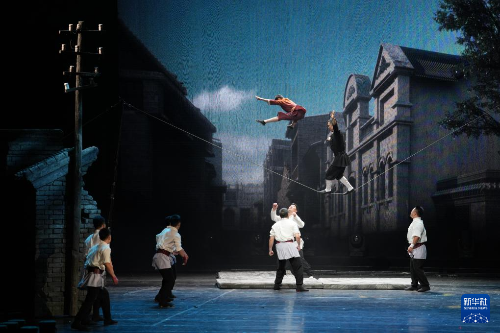 7月10日,演员在杂技剧《先声》中表演。(新华社记者 邢广利 摄)