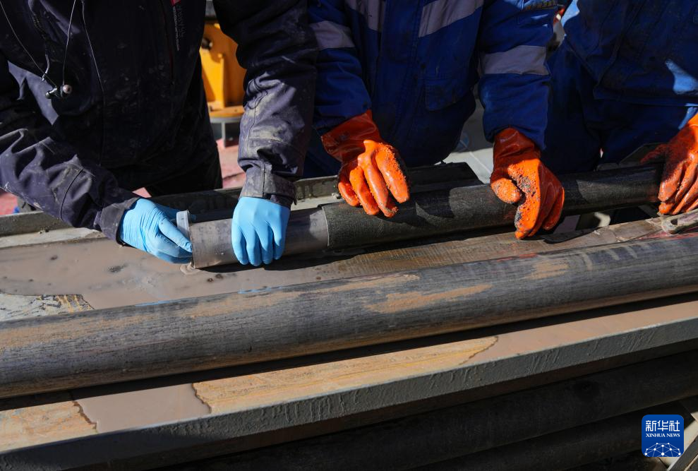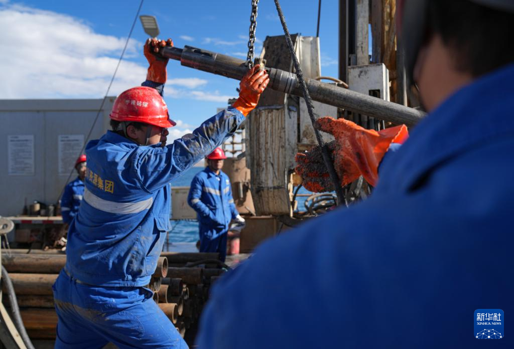 月11日,钻探人员正在提取湖泊岩芯。(新华社记者 晋美多吉 摄)